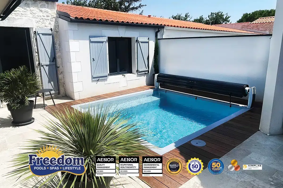 Minimaliste et ultra-tendance, la piscine Cube de 3,45 x 3,45 m est un carré parfait de 11 m³. Ce modèle architectural s’intègre avec brio dans les projets de rénovation urbaine à Nice ou Cannes. Sa petite taille permet une installation rapide tout en offrant un rendu visuel haut de gamme.